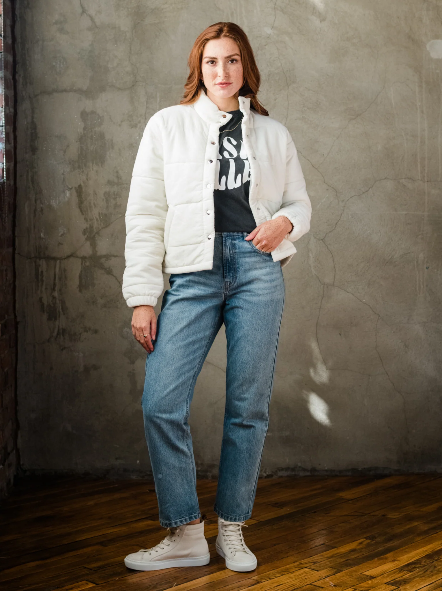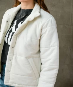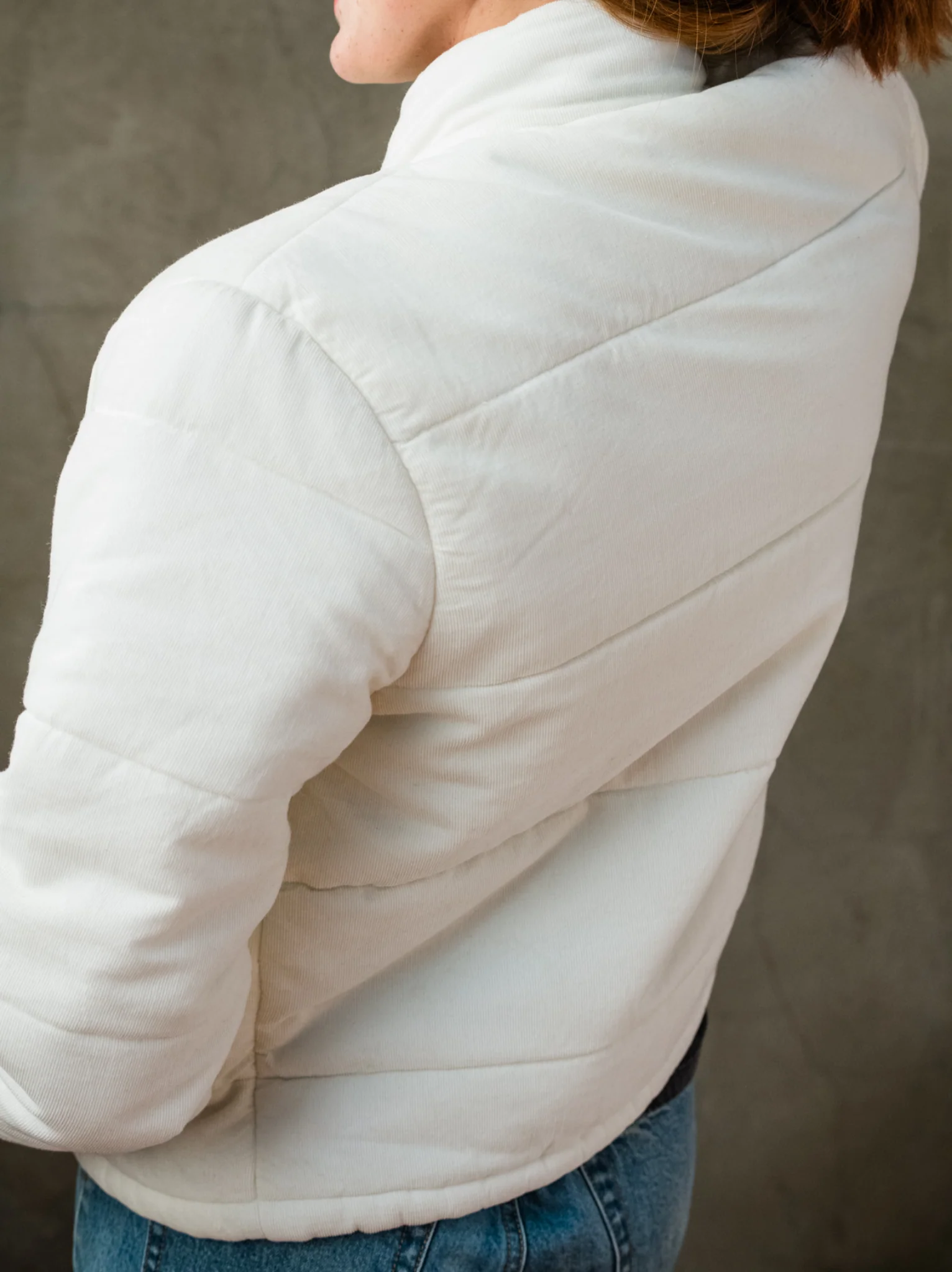 Plush corduroy brings a retro refresh to a staple puffer jacket. Crafted from an ultrasoft cream cotton corduroy, the light-medium weight construction makes for the ideal layering piece in your cool-weather wardrobe. Complete with a stand collar, welt pockets for added functionality, and a relaxed fit – this is not your average puffer.