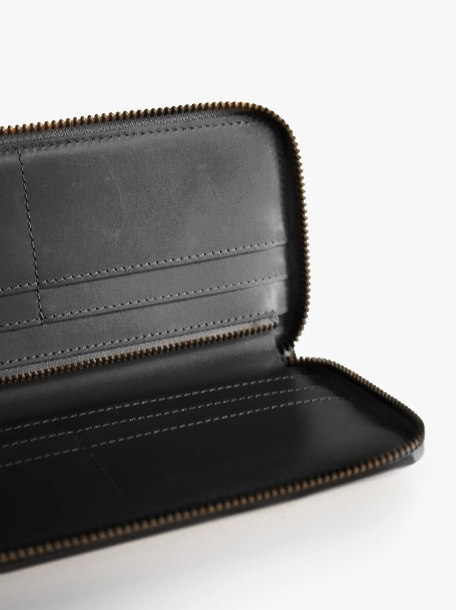 Interior cash slot pocket, 12 card slots, zippered pocket to store cash or coins