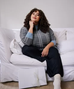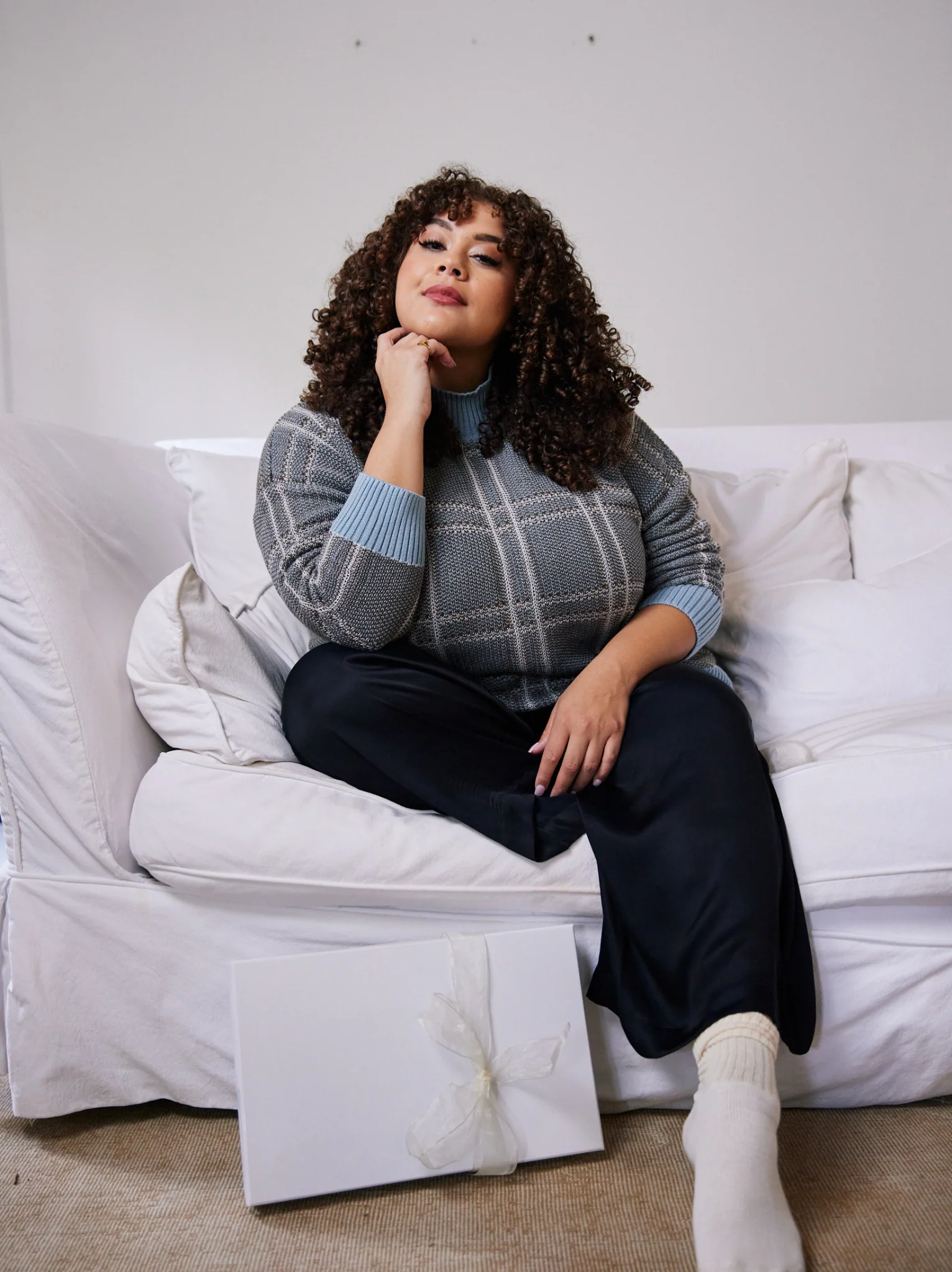 Inspired by the classic heritage pattern, the Jana features a jacquard patterns in plaid with a contrast neck, cuffs, and hem. Designed with a drop shoulder and elevated rib neckline, this chunky knit pullover has a step hem with side slits, creating a classic high-low look. It’s made of cozy cotton for extra warmth on those cold days.