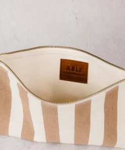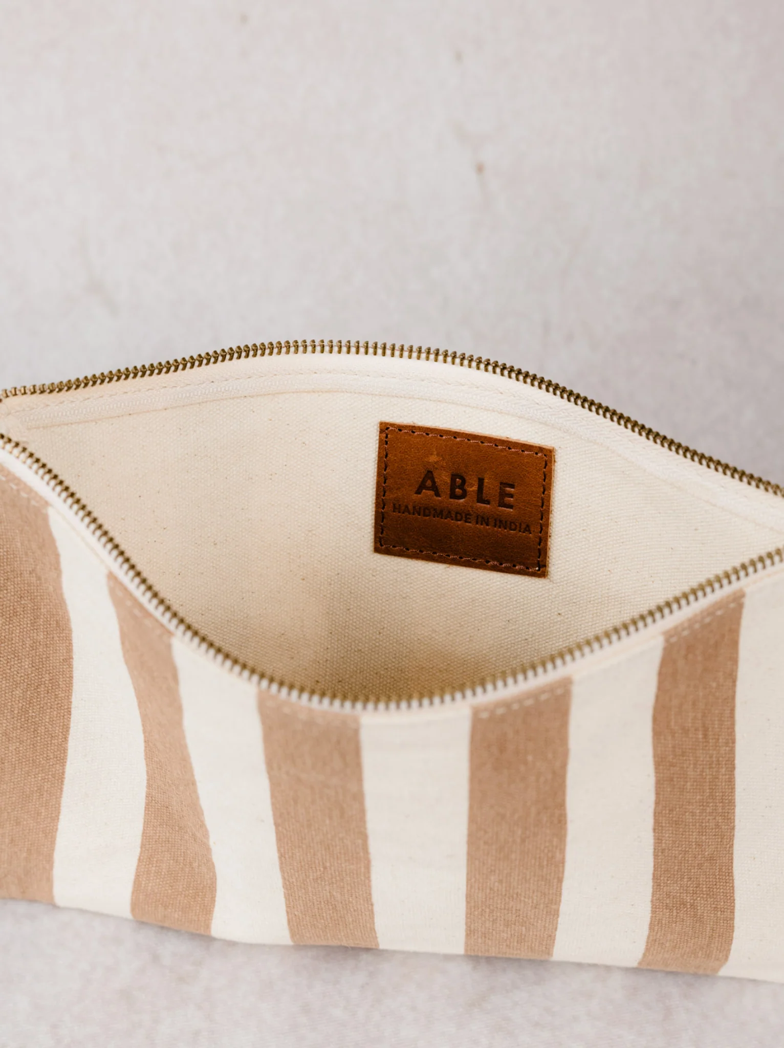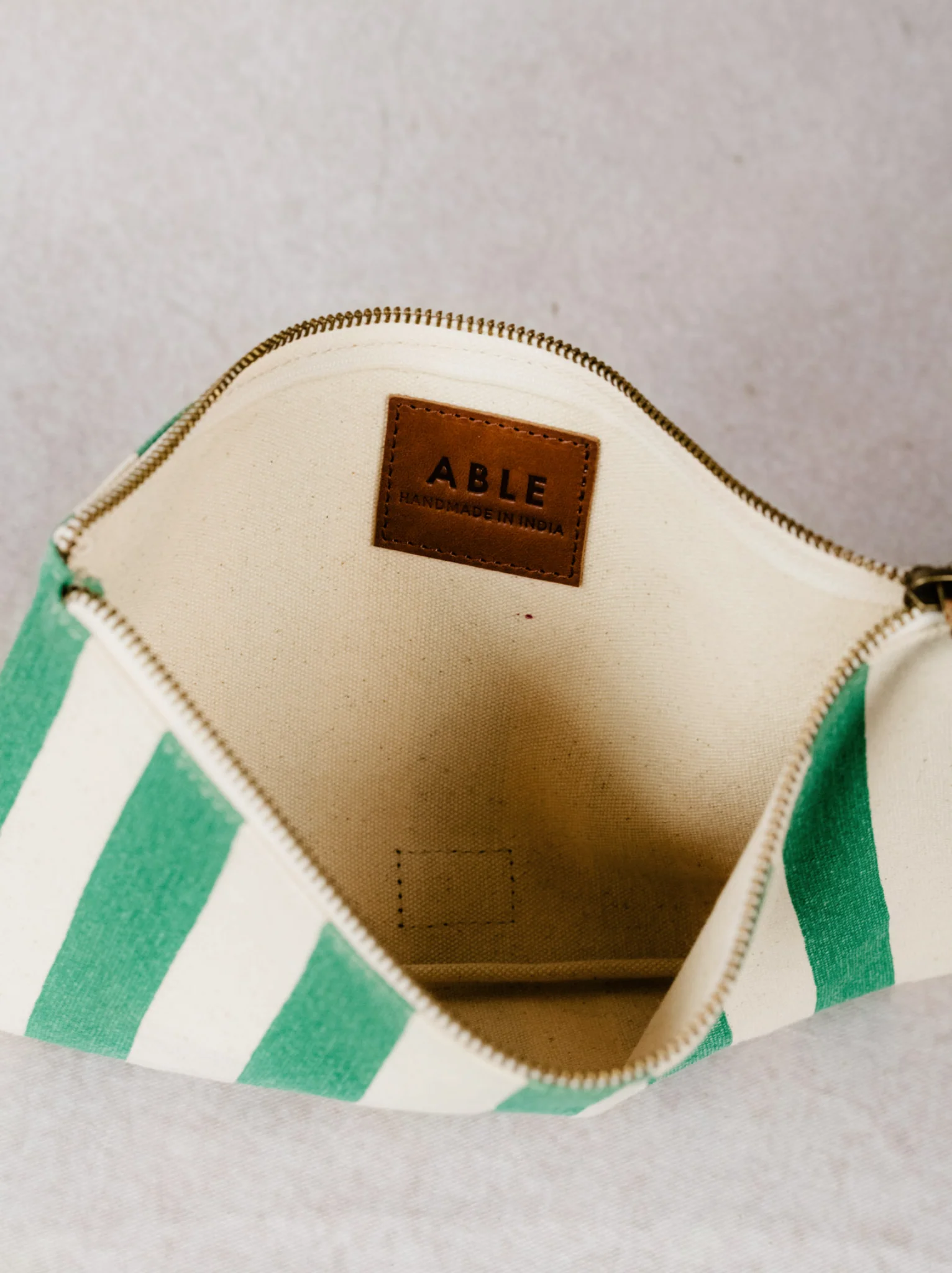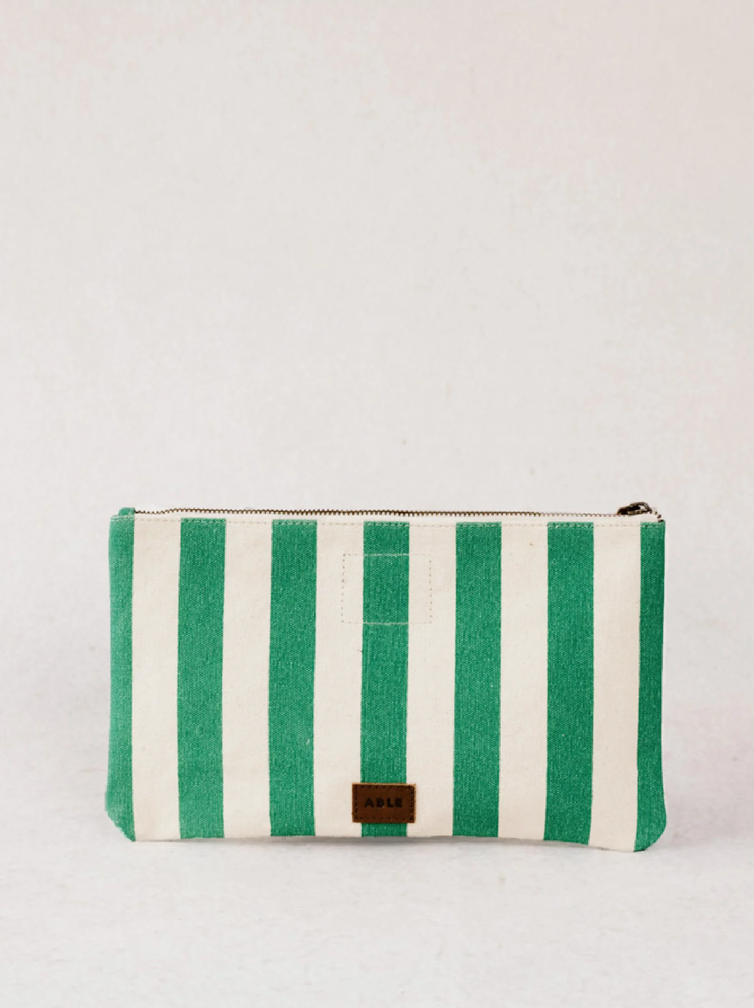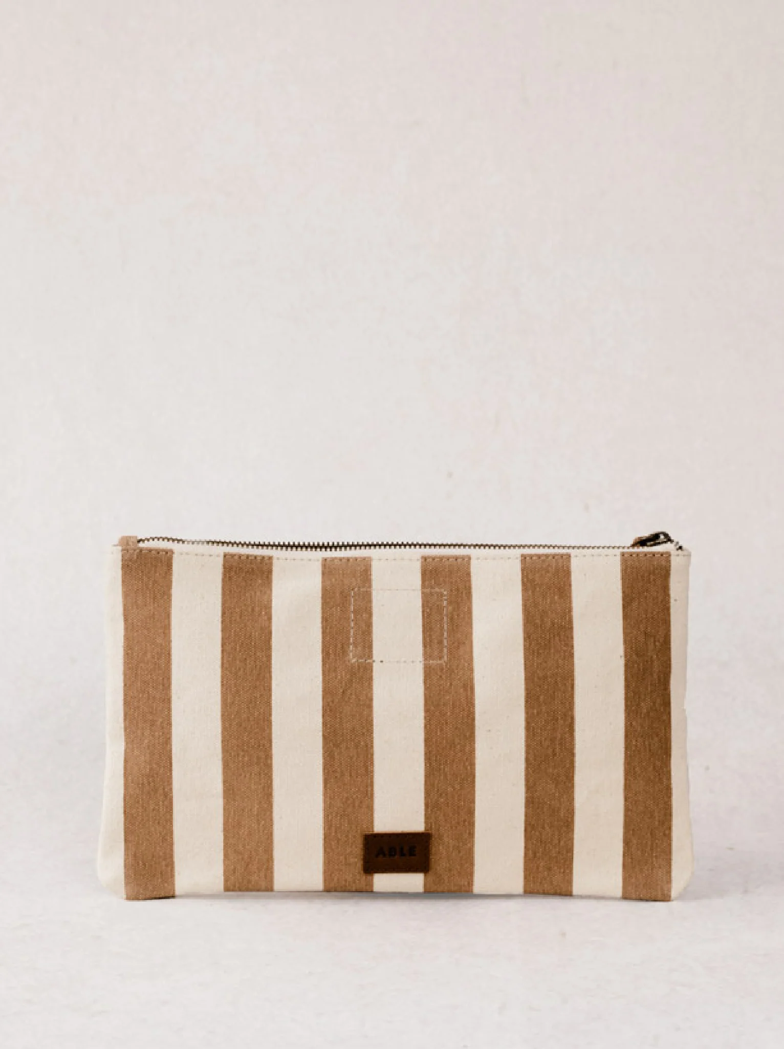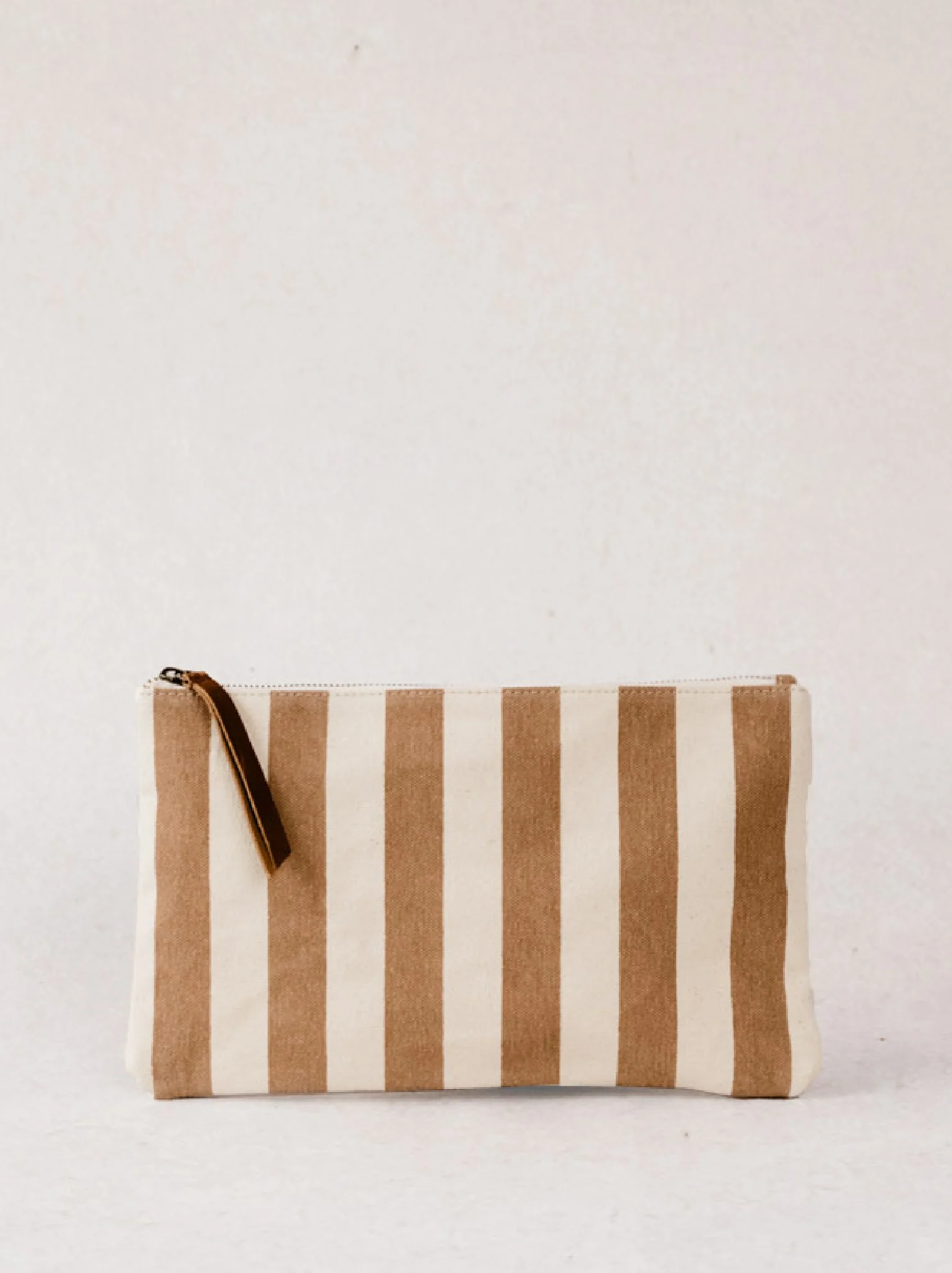 The perfect all-purpose pouch with classic cabana stripes. This colorful and convenient canvas clutch is ready for endless summer days spent by the pool. Perfect for storing your phone, makeup, sunscreen and more. Pair with our Mandrell Cabana Striped Tote for an extra coordinated statement.